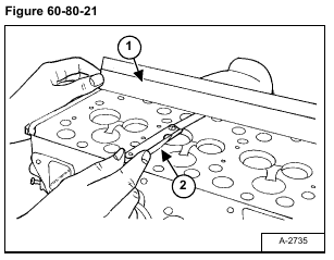 Put a feeler gauge (Item 2) [Figure 60-80-21] between the straight edge and the surface of the cylinder head.