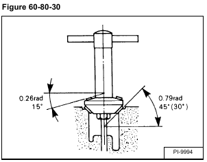 Grind the valve seat surface in the cylinder head to the correct angle [Figure 60-80-30].