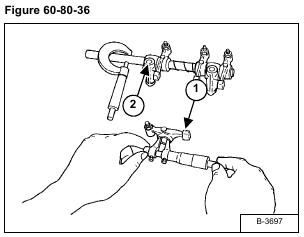 Measure the rocker arm I.D. (Item 1) [Figure 60-80-36] with an inside micrometer.