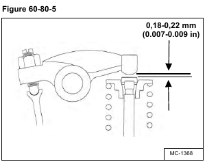 The correct valve clearance is 0,18 – 0,22 mm (0.007 – 0.0087 in) [Figure 60-80-5].