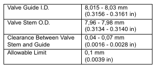 Calculate the clearance. If the clearance exceeds the allowable limit, replace the valve and / or valve guide.