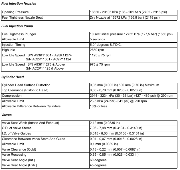BobCat E35 – ENGINE INFORMATION – Specifications