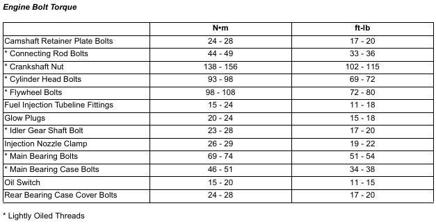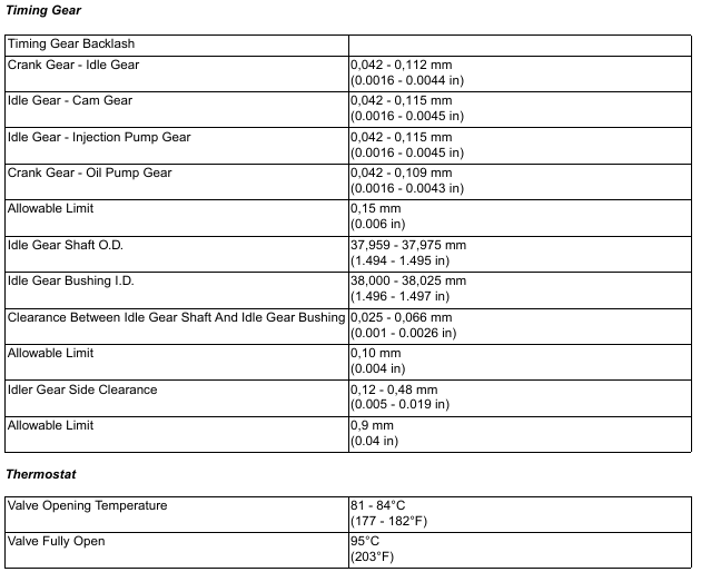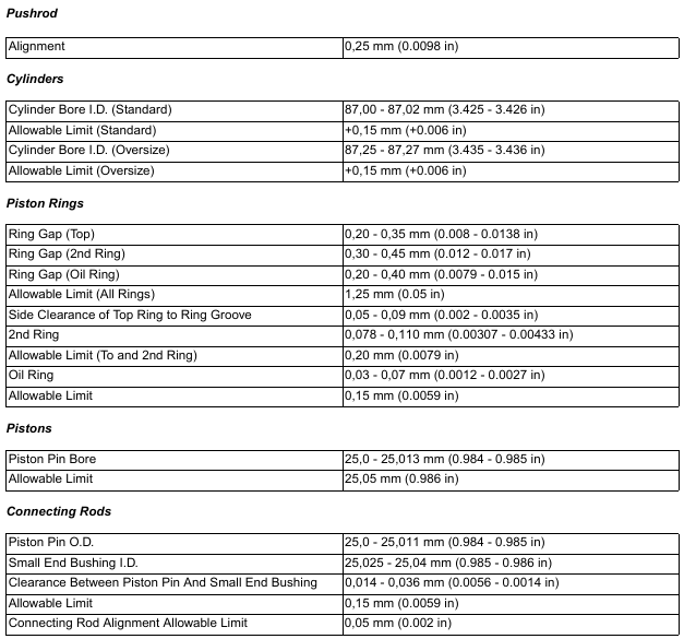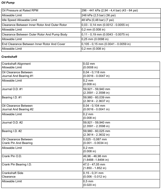 BobCat E35 – ENGINE INFORMATION – Crankshaft Re-Grind Data