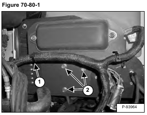 Cut and remove the cable ties (Item 1). Remove the three bolts (Item 2) [Figure 70-80-1] and reposition the fuse box.