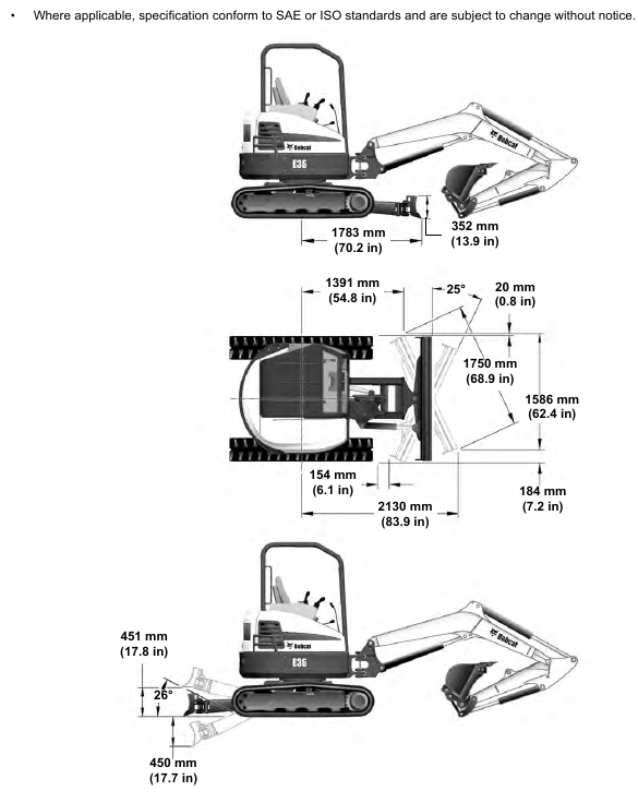 Posted on October 8, 2023 by Jack BobCat E35 – EXCAVATOR SPECIFICATIONS – E35 Excavator Machine Dimensions – Angle Blade