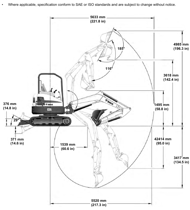 Posted on October 8, 2023 by Jack BobCat E35 – EXCAVATOR SPECIFICATIONS – E35 Excavator Machine Dimensions – Long Arm