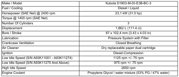 BobCat E35 – EXCAVATOR SPECIFICATIONS – Engine