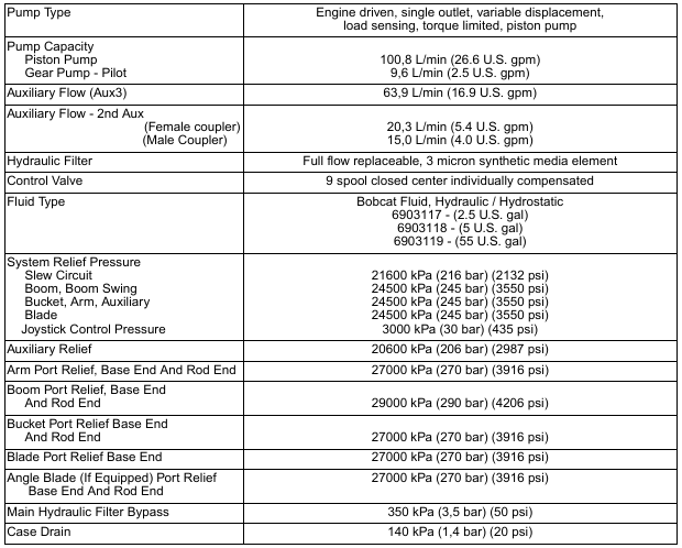 BobCat E35 – EXCAVATOR SPECIFICATIONS – Hydraulic System