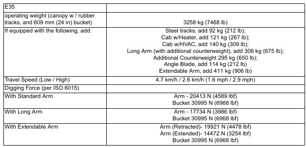 BobCat E35 – EXCAVATOR SPECIFICATIONS – Performance