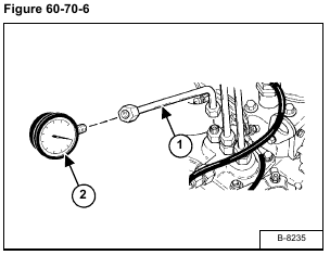 Connect the adapter fuel line (Item 1) to the fitting and connect the pressure gauge (Item 2) [Figure 60-70-6].