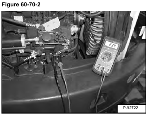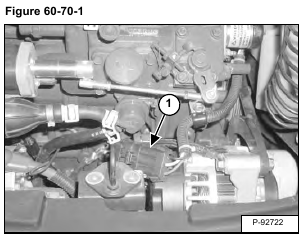Disconnect the fuel shut off solenoid wire harness (Item 1) [Figure 60-70-1].