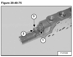 Installation: Install the poppet in the valve body. Tighten the valve body (Item 1) to 59 – 69 Nā¢m (44 – 51 ft-lb) torque. Install the adjustment screw (Item 2). Tighten the screw to 19 – 21 Nā¢m (14 – 15 ft-lb) torque. Install the locknut (Item 3) [Figure 20-40-75] on the adjustment screw. Tighten the nut to 19 – 21 Nā¢m (14 – 15 ft-lb) torque.