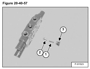 Remove the spring (Item 1) and compensator valve (Item 2). Remove the O-ring (Item 3) [Figure 20-40-57].