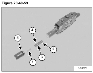 Remove the spring (Item 1) and spool (Item 2). Remove the back-up ring (Item 3) and O-rings (Item 4) [Figure 20-40-59].