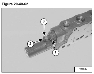 Installation: Install the poppet in the valve body. Tighten the valve body (Item 1) to 59 – 69 Nā¢m (44 – 51 ft-lb) torque. Install the adjustment screw (Item 2). Tighten the screw to 19 – 21 Nā¢m (14 – 15 ft-lb) torque. Install the locknut (Item 3) [Figure 20-40-62] on the adjustment screw. Tighten the nut to 19 – 21 Nā¢m (14 – 15 ft-lb) torque.