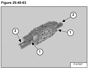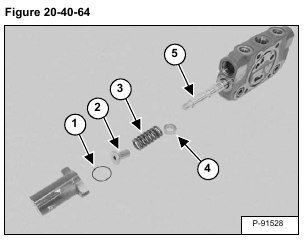 Remove the O-ring (Item 1), spring seat (Item 2), spring (Item 3) and spring seat (Item 4) from both ends of the valve. Remove the spool (Item 5) [Figure 20-40-64].