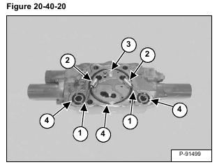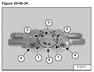 Remove the springs (Item 1), poppets (Item 2) and shuttle valve (Item 3). Remove the O-rings (Item 4) [Figure 20-40-34].