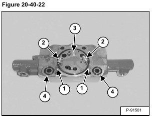 Remove the springs (Item 1), poppets (Item 2) and shuttle valve (Item 3). Remove the O-rings (Item 4) [Figure 20-40-22].