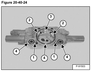 Remove the springs (Item 1), poppets (Item 2) and shuttle valve (Item 3). Remove the O-rings (Item 4) [Figure 20-40-24].