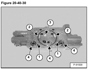 Remove the springs (Item 1), poppets (Item 2) and shuttle valve (Item 3). Remove the O-rings (Item 4) [Figure 20-40-30].