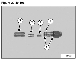 Remove the spring (Item 1), poppet (Item 2) and sleeve (Item 3). Remove the O-rings (Item 4) and back-up ring (Item 5) [Figure 20-40-106].