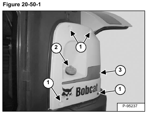 Remove the four bolts (Item 1), fuel cap (Item 2) nut and side cover (Item 3) [Figure 20-50-1].