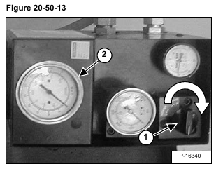 Turn the hydraulic tester flow control (Item 1) [Figure 20-50-16] clockwise until maximum restriction.