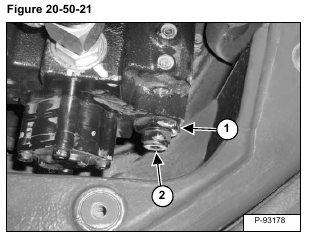 If the flow at low pressure must be adjusted, stop the engine and loosen the lock nut (Item 1). Turn the adjustment (Item 2) [Figure 20-50-21] in to increase flow and out to decrease flow.