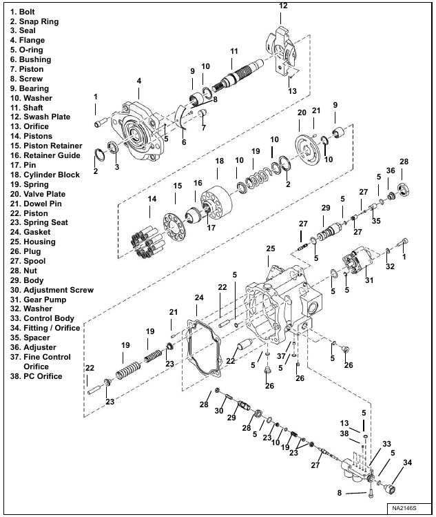 BobCat E35 – HYDRAULIC PUMP – Piston Pump Parts Identification