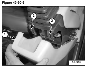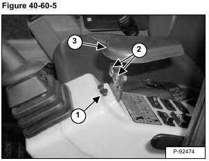 Remove the fastener assembly (Item 1). Remove the bolts (Item 2) and nuts. Remove the arm rest (Item 3) [Figure 40-60-5].