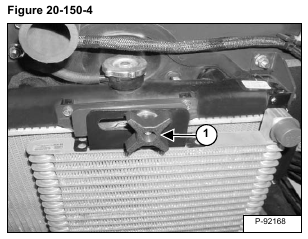 Tilt the cooler slightly away from the radiator. Slide the pivot rod (Item 1) [Figure 20-150-5] towards the rear of the excavator.