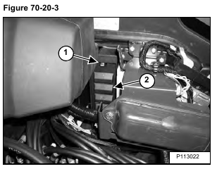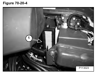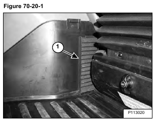 The recirculation filter (Item 1) [Figure 70-20-1] is located to the right of the operator’s seat.