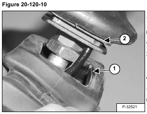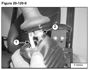 Pull the boot down and pull the wire harness (Item 1) out of the boot. Loosen the nut (Item 2) [Figure 20-120-9] and remove the handle.