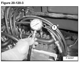 From the test kit install a 3447 kPa (35 bar) (500 psi) gauge (Item 1) [Figure 20-120-3] on the pilot line. Start the excavator, and warm the hydraulic oil to operating temperature.