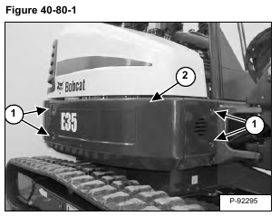 Posted on October 4, 2023 by Jack BobCat E35 – RIGHT UPPERSTRUCTURE COVER – Removal And Installation Remove the bolts (Item 1). Remove the cover (Item 2) [Figure 40-80-1].