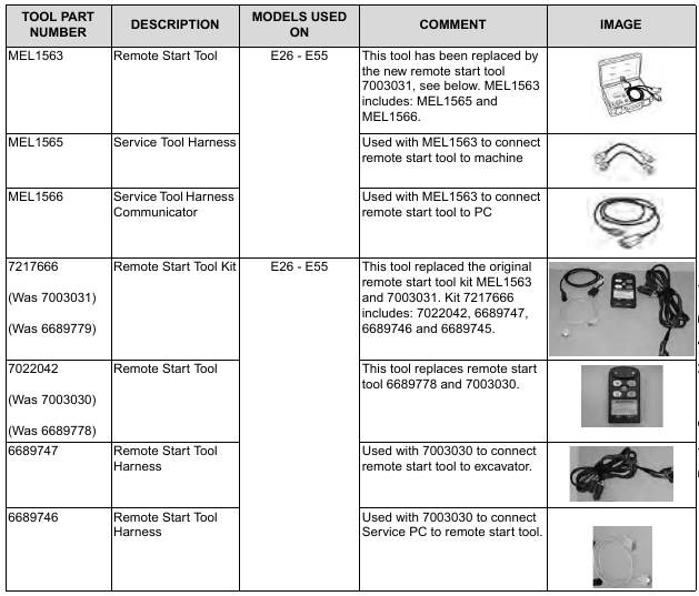 Posted on October 8, 2023 by Jack BobCat E35 – SERVICE TOOLS REQUIRED – Remote Start Tools See BobcatNET for parts ordering information. (For Europe dealers, see the Bobcat Special Tools Catalogue for additional information and part numbers.)