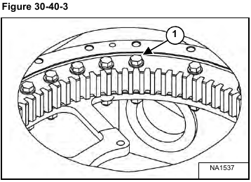 Install the swing bearing bolts (Item 1) [Figure 30-40-3] and nuts.