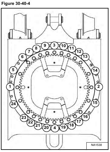 Tighten the bolts in the correct sequence (#1 to #24) to 105 – 115 Nโขm (78 – 85 ft-lb) torque [Figure 30-40-4].