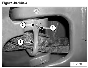 Remove the cotter pin (Item 1), retaining pin (Item 2) and hose bracket (Item 3) [Figure 40-140-3].