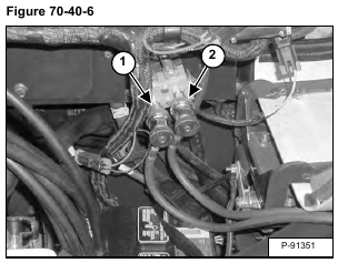 Connect the Red hose (Item 1) [Figure 70-40-6] to the high pressure port and open the valve.