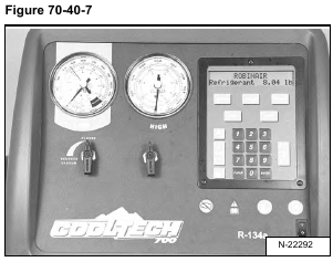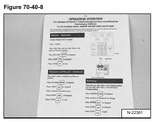 NOTE: The reclaimer unit has a complete step by step set of instructions [Figure 70-40-8] to follow for reclamation and recharging of the A/C system. A trained technician should follow these instructions as they may vary slightly depending on the model and brand of reclaimer used.
