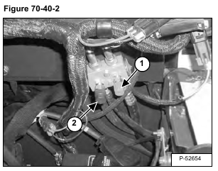 Locate the low pressure port (Item 1) and high pressure port (Item 2) [Figure 70-40-2].