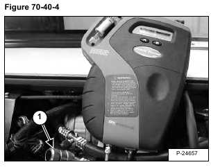Remove the protective cap and connect the Refrigerant Identifier to the low pressure hose (Item 1) [Figure 70-40-4].