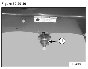 Loosen the bolt (Item 1) and nut. Remove the top roller (Item 2) [Figure 30-20-38].