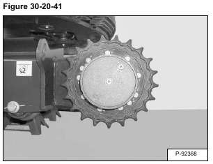 Posted on August 18, 2022 by Jack BobCat E35 – TRACK UNDERCARRIAGE COMPONENTS (RUBBER TRACK) – Sprocket Removal And Installation Remove the drive sprocket bolts [Figure 30-20-41]. Installation: Put thread adhesive (Loctiteยฎ 242) on the bolts and tighten to 108 Nโขm (80 ft-lb) torque. Remove the drive sprocket from the travel motor.