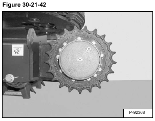 Posted on August 18, 2022 by Jack BobCat E35 – TRACK UNDERCARRIAGE COMPONENTS (STEEL TRACK) – Sprocket Removal And Installation Remove the drive sprocket bolts [Figure 30-21-42]. Installation: Put thread adhesive (Loctiteยฎ 242) on the bolts and tighten to 108 Nโขm (80 ft-lb) torque. Remove the drive sprocket from the travel motor.