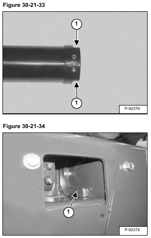 The flat sides (Item 1) [Figure 30-21-33] of the recoil spring grease cylinder must engage the mount (Item 1) [Figure 30-21-34] of the track frame.