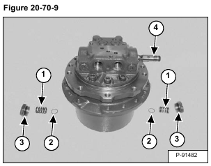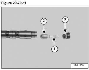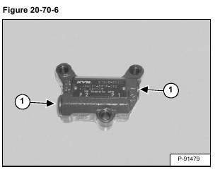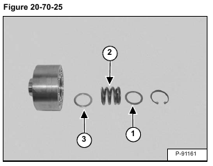Remove the spring (Item 1) and check valve (Item 2) from both ends of the valve. Remove the O-ring (Item 3) [Figure 20-70-11] from both plugs.