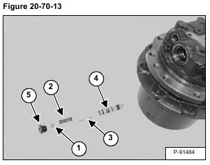Remove the spring seat (Item 1), spring (Item 2), inner spool (Item 3) and outer spool (Item 4). Remove the O-ring (Item 5) [Figure 20-70-13] from the plug.
