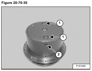 Remove the two plugs (Item 1) from the cover. Remove the pipe plug (Item 2) [Figure 20-70-30].